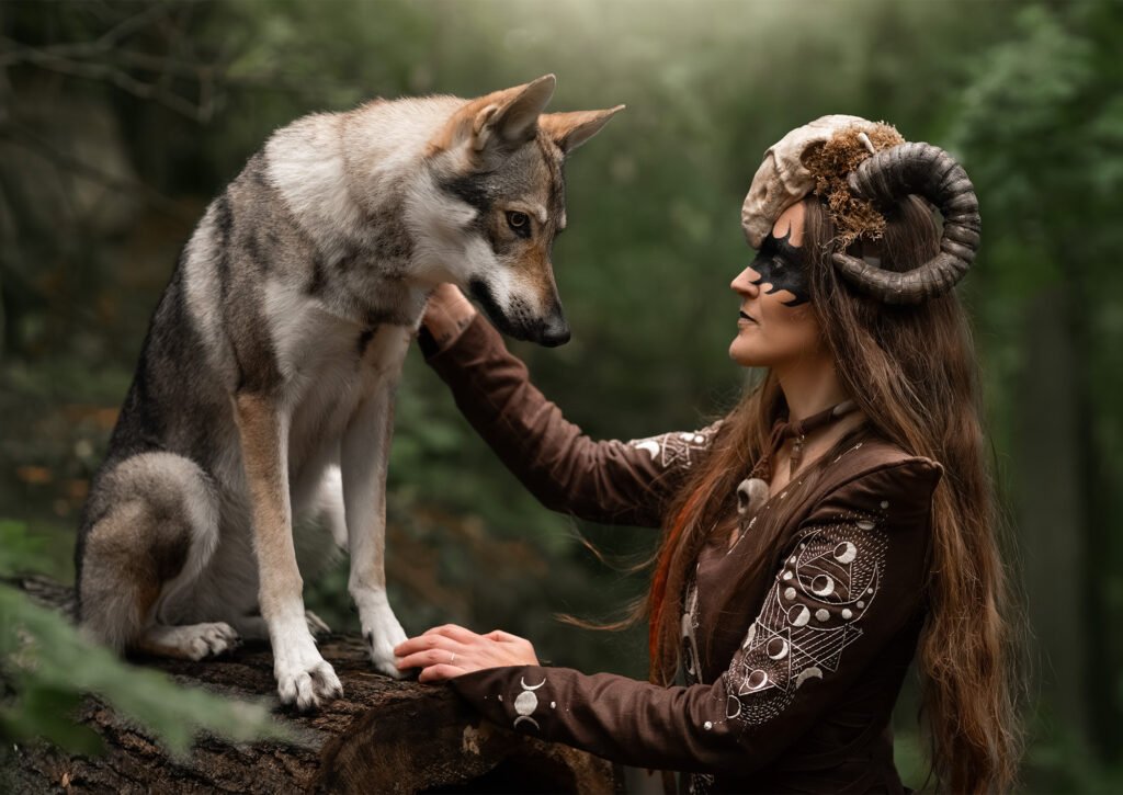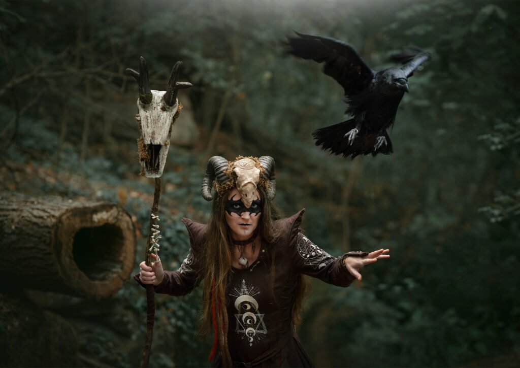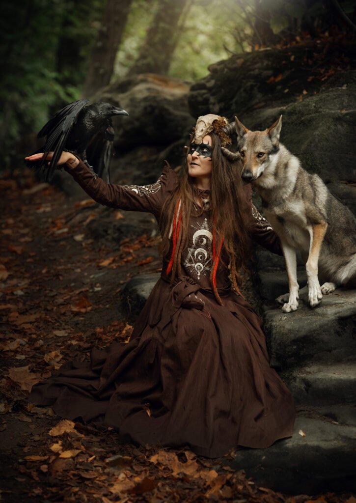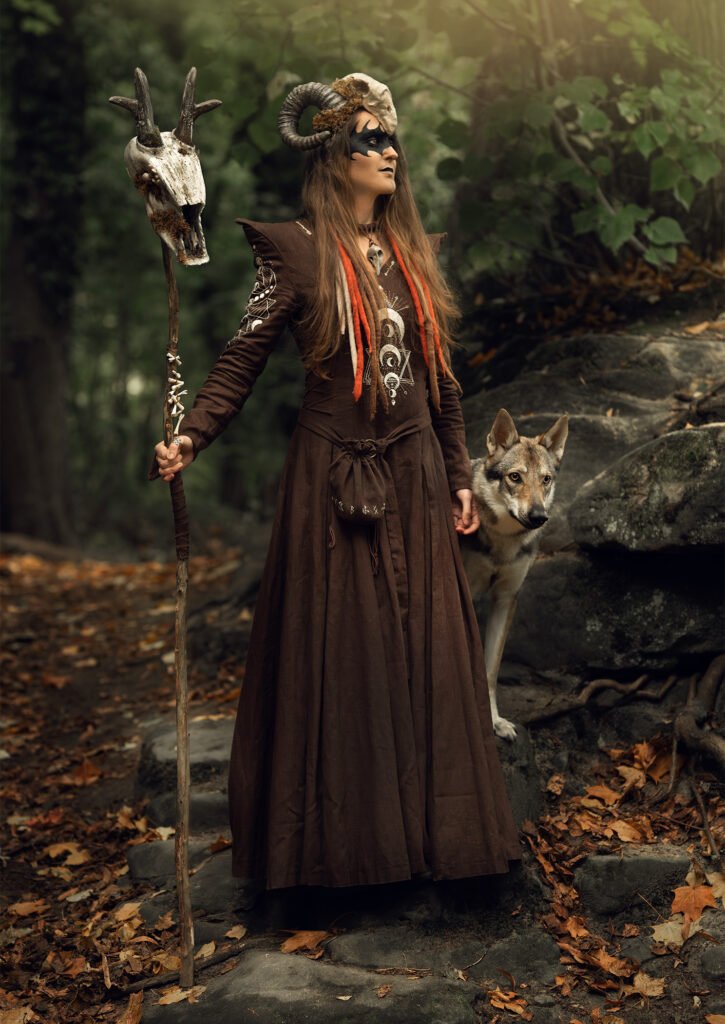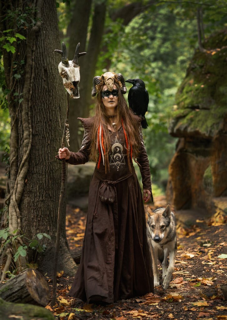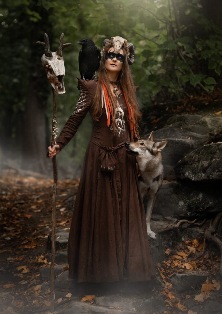 In 2023, I attended a festival in northern France. Although itâs called the Witch Festival, itâs more of a medieval gathering â you wonât see many people dressed as witches. My mother joked that I should make a witch costume for the following year, and I took the challenge without hesitation. Almost immediately, I knew what I wanted: a forest witch, with a green dress, a corset, leaves, and horns.
